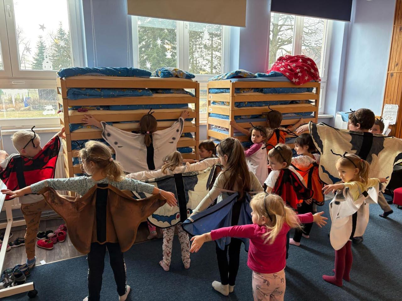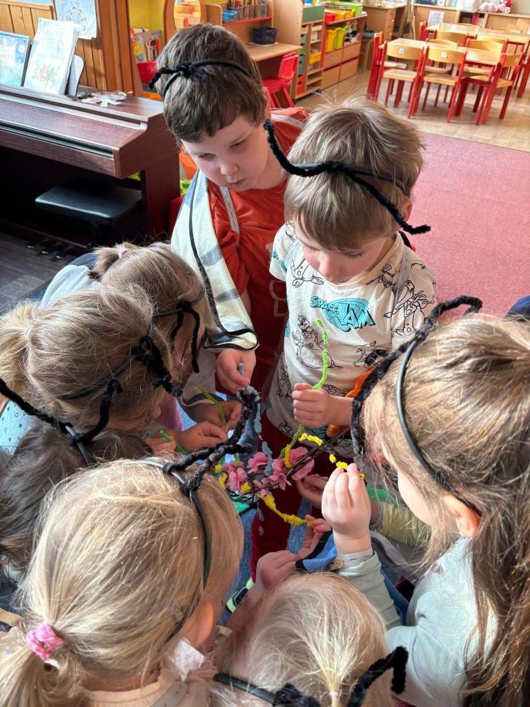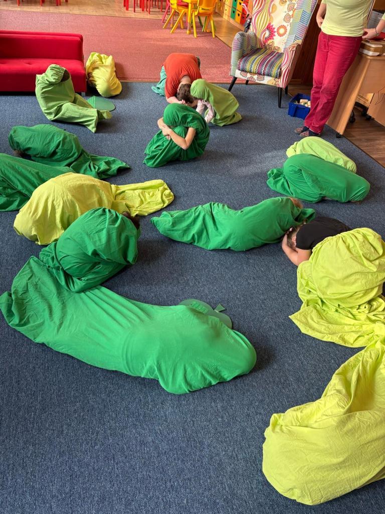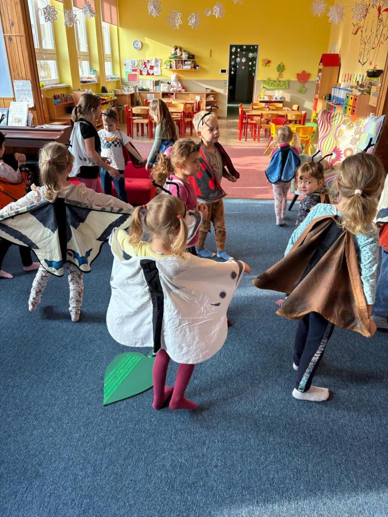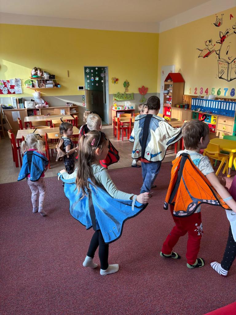 Paní Adamcová za dětmi přijela s hezkým vzdělávacím programem o motýlech. Děti nejvíce nadchly převleky motýlů a housenek.